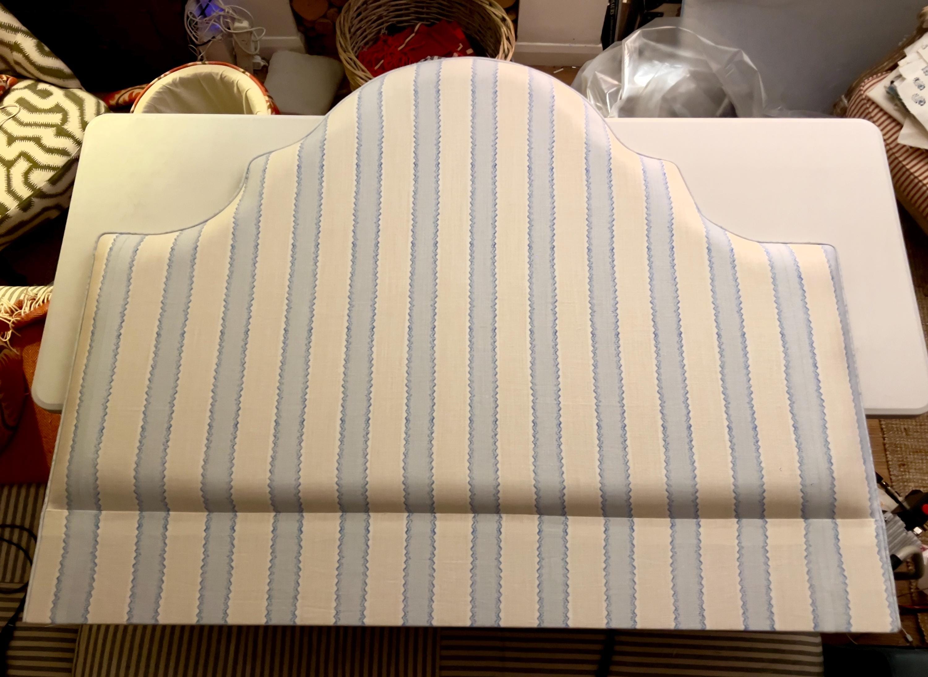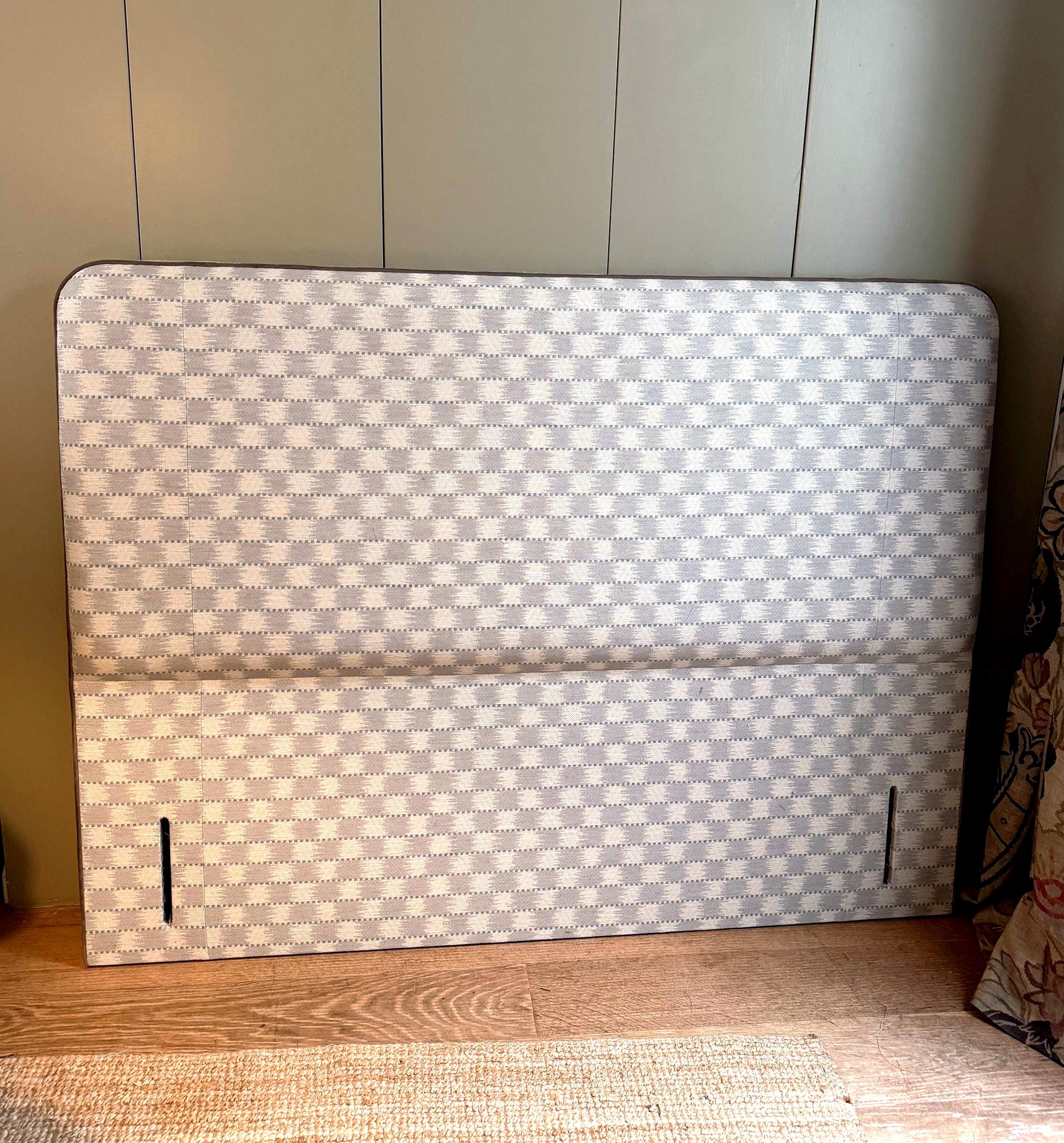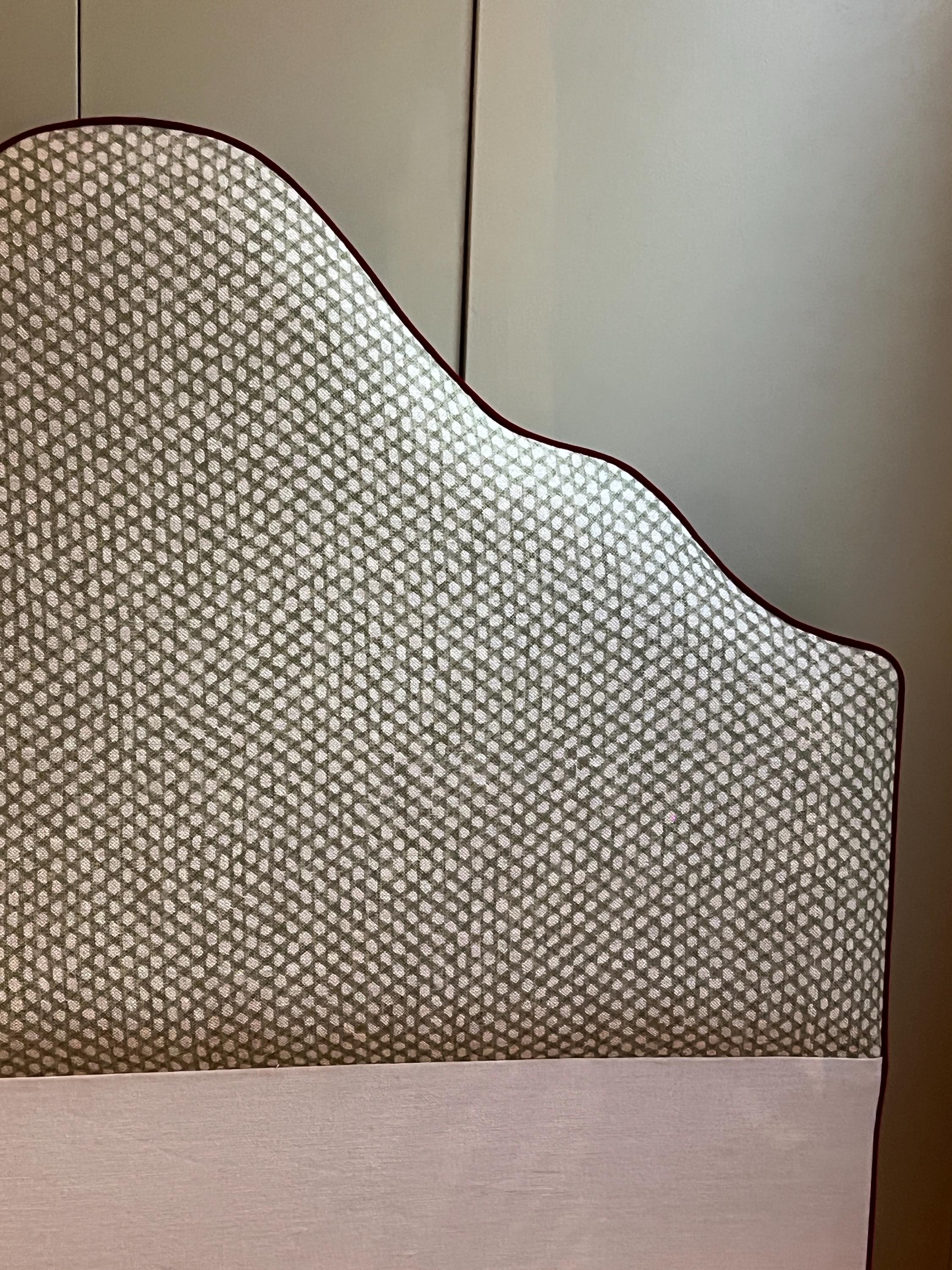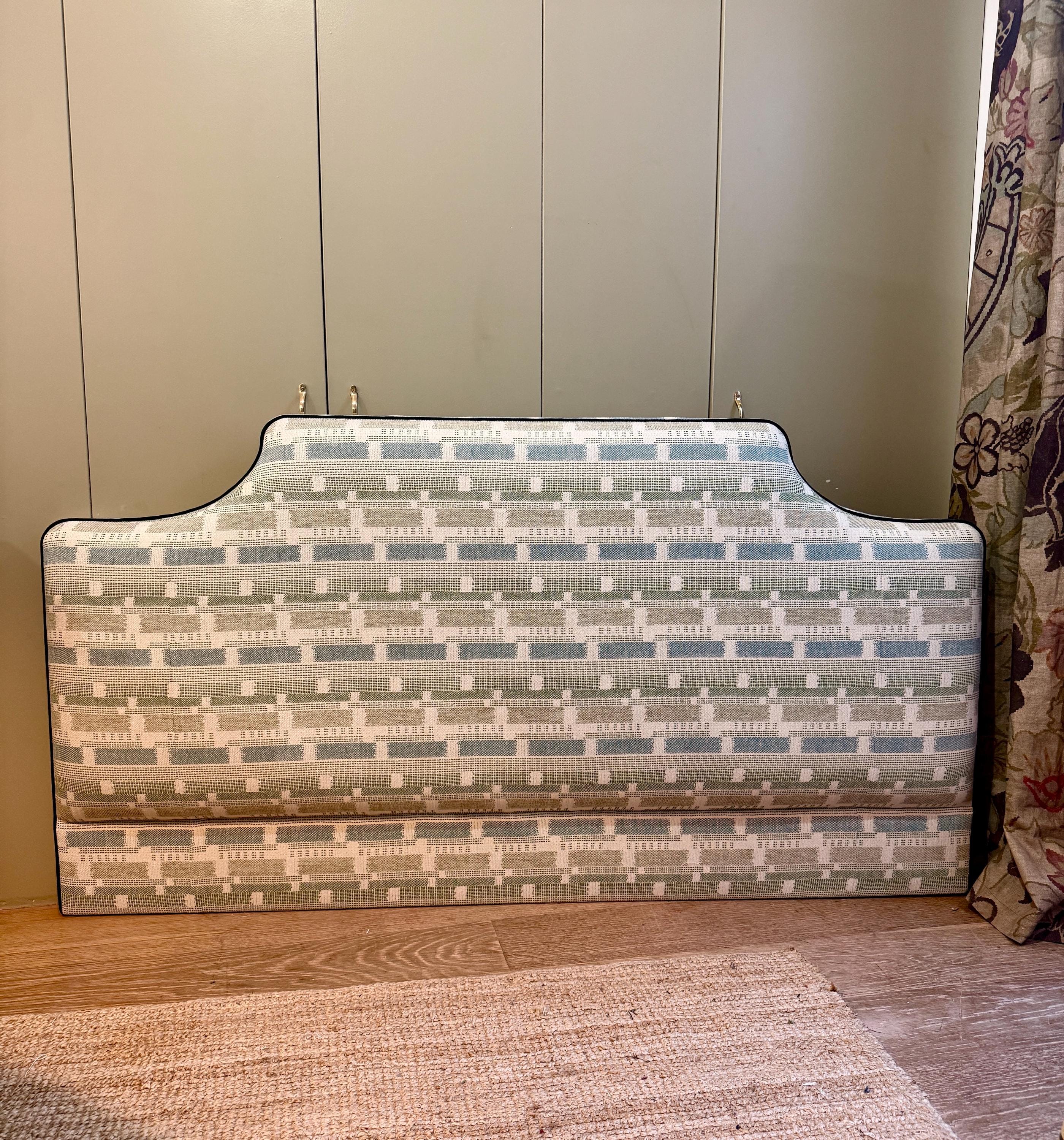 Bespoke upholstered floor-standing headboard in your own fabric with optional piping, in a range of shapes and sizes. Please select your preferred bed size ranging from small single to super king, then choose your headboard shape and piping or no piping. See other listings with our in house range of fabrics or contact us for bespoke sizes.