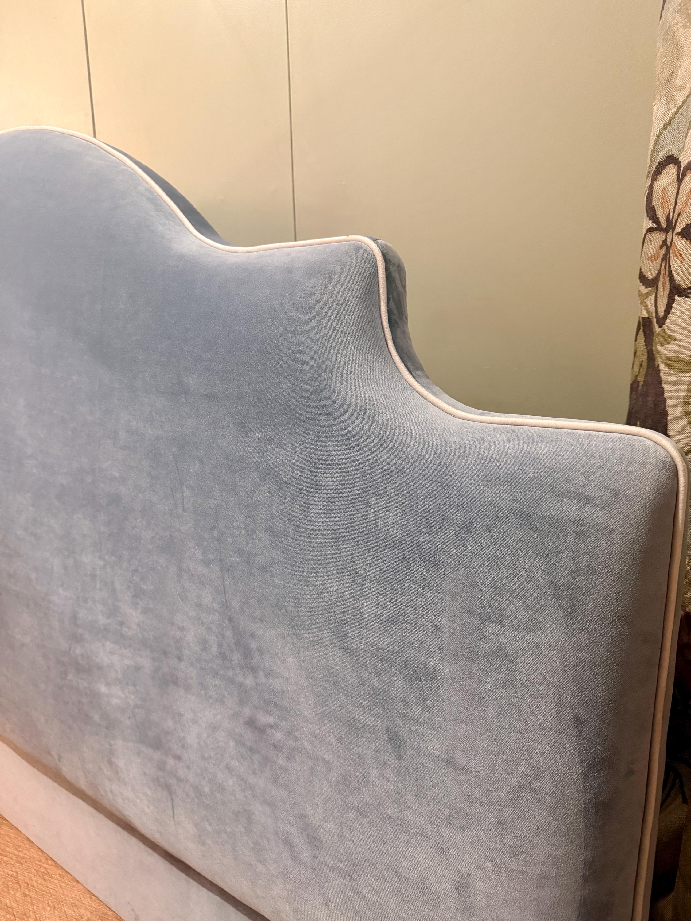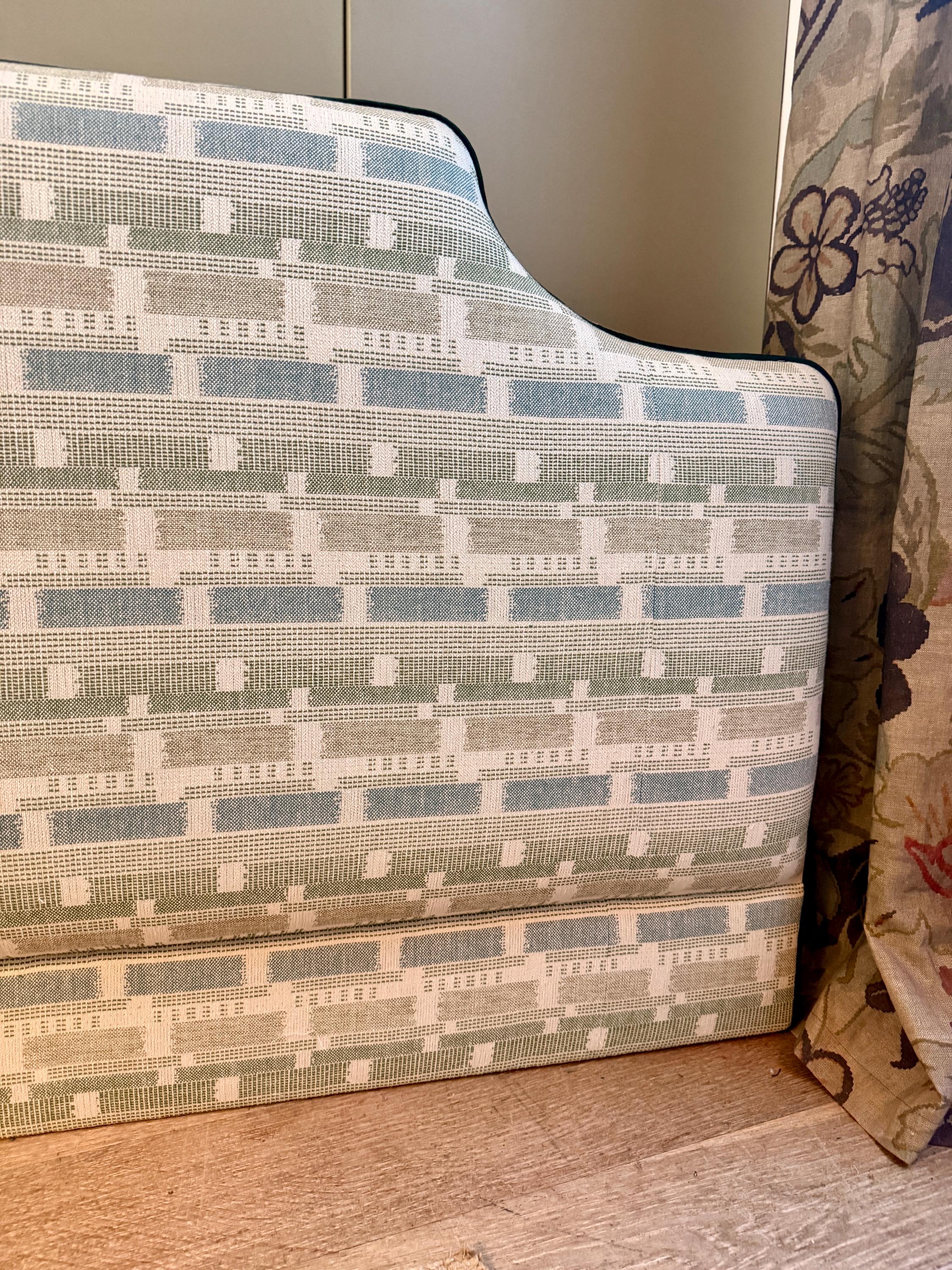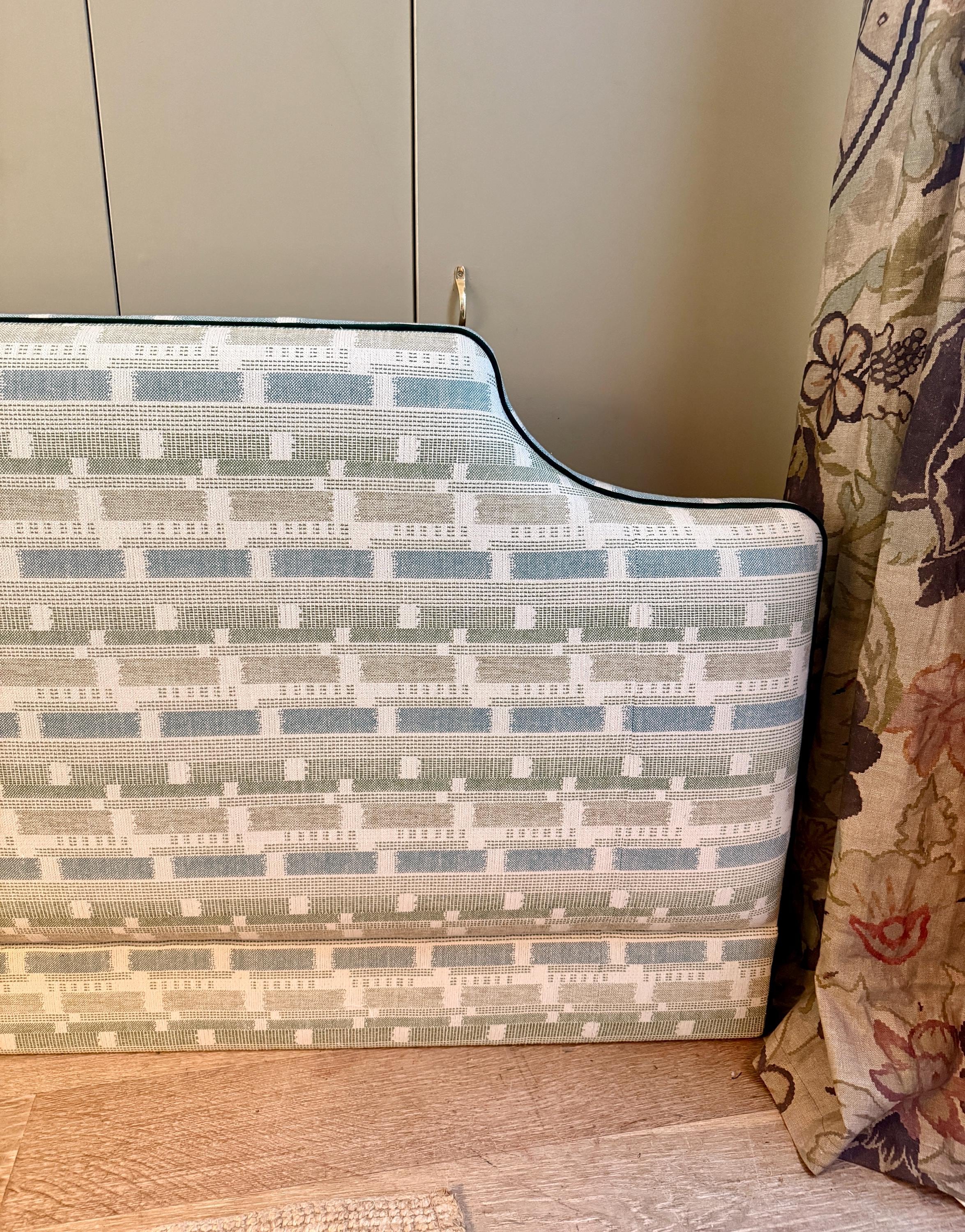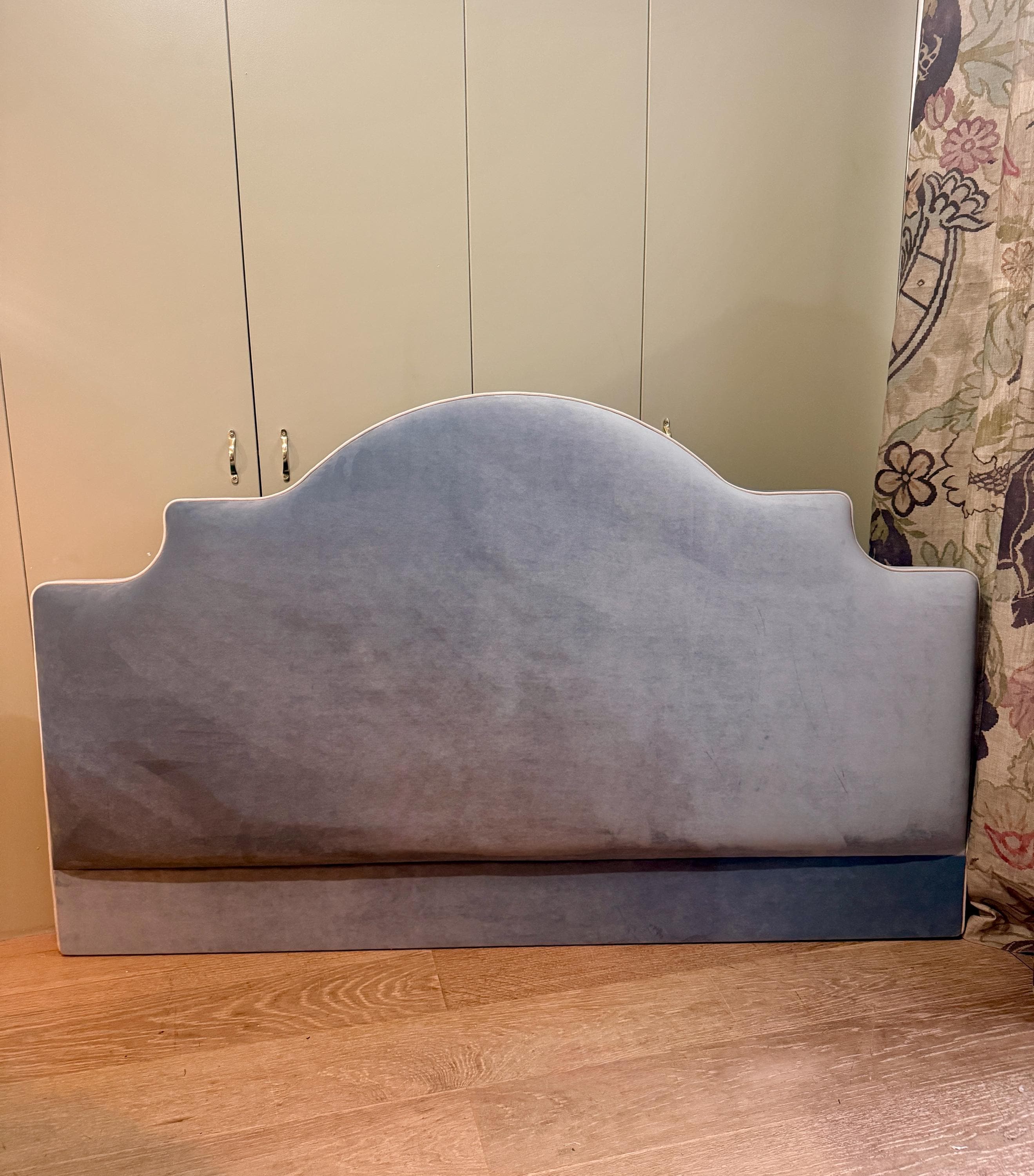 Bespoke upholstered floor-standing headboard in your own fabric with optional piping, in a range of shapes and sizes. Please select your preferred bed size ranging from small single to super king, then choose your headboard shape and piping or no piping. See other listings with our in house range of fabrics or contact us for bespoke sizes.