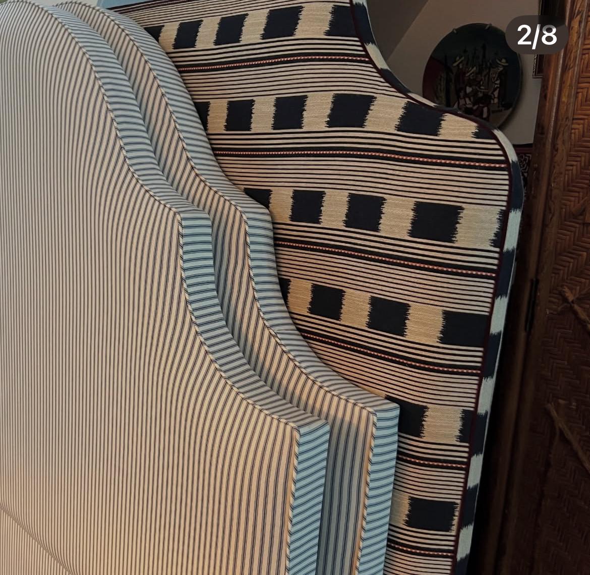 Our herringbone ticking stripe upholstered floor-standing headboard comes in 12 colours, a choice of 12 signature shapes and all bed sizes. If your measurements aren't listed or you're based outside the UK, just send us your measurements for a quote.