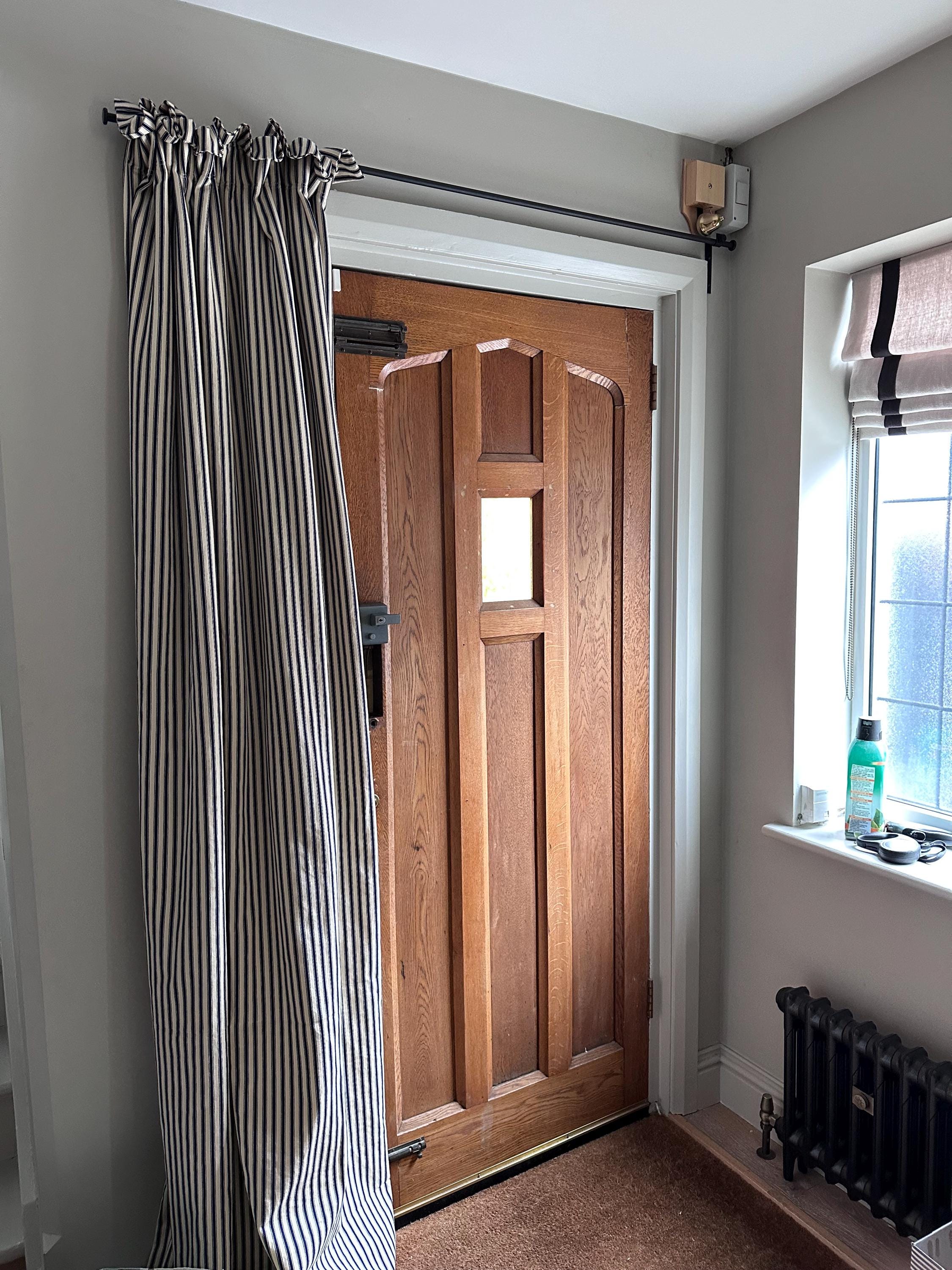 Bespoke thermal door curtain in pure cotton ticking stripe available in a variety of colours and sizes. If your measurements are not listed please get in touch for a quote.