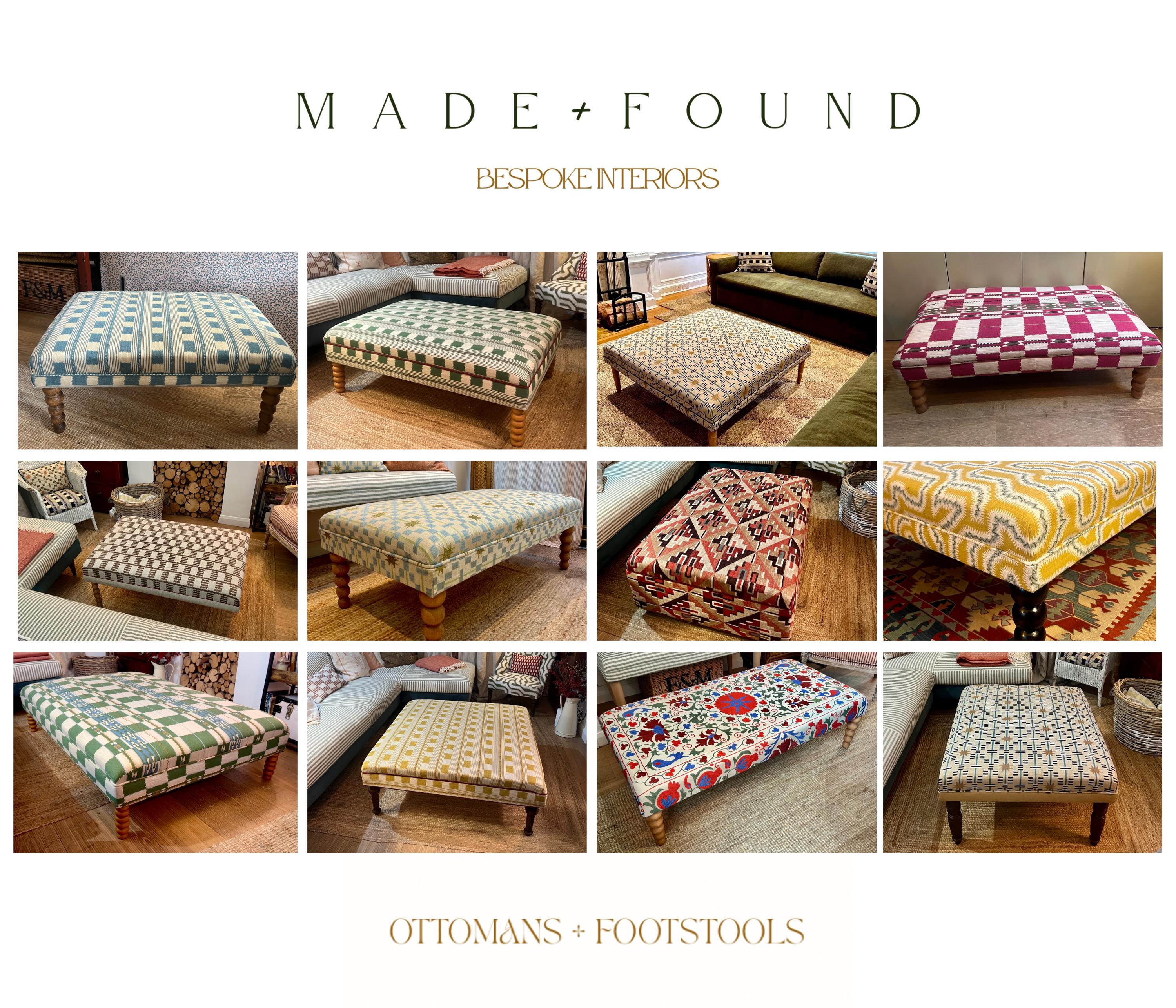 Pls see other listings for bespoke benches and foot stools in client’s own fabric or for our fabric consultation service and a choice of house fabrics. We hold accounts with a wide range of premium fabric houses such as Colefax and Fowler, Osborne and Little, Linwood, Romo, Rapture and Wright, Studio Ashby and more.