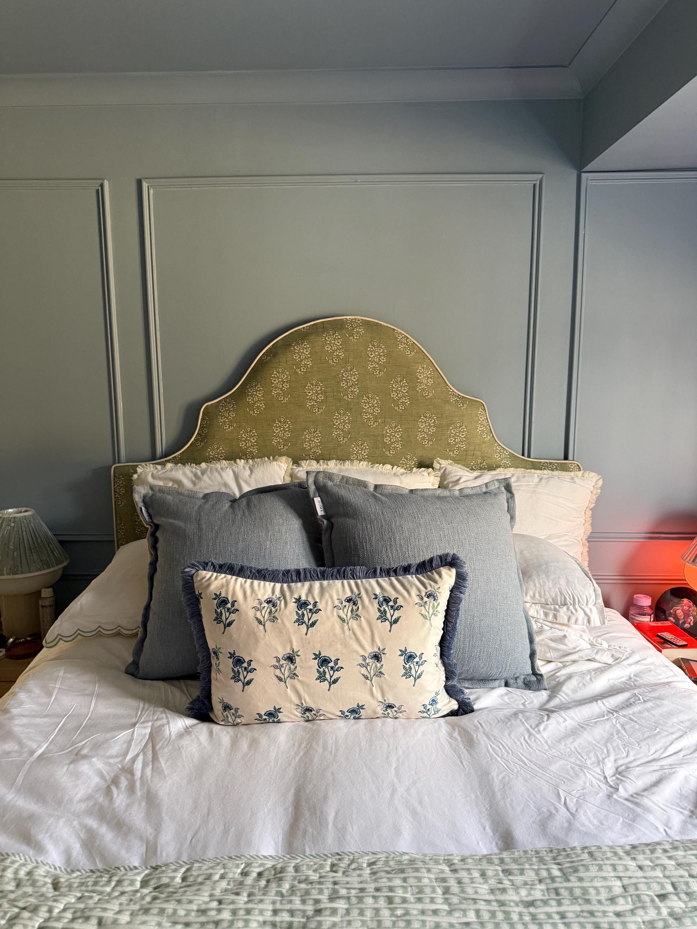 Our bespoke upholstered floor-standing headboard are available in a range of patterned fabrics and our signature designs.