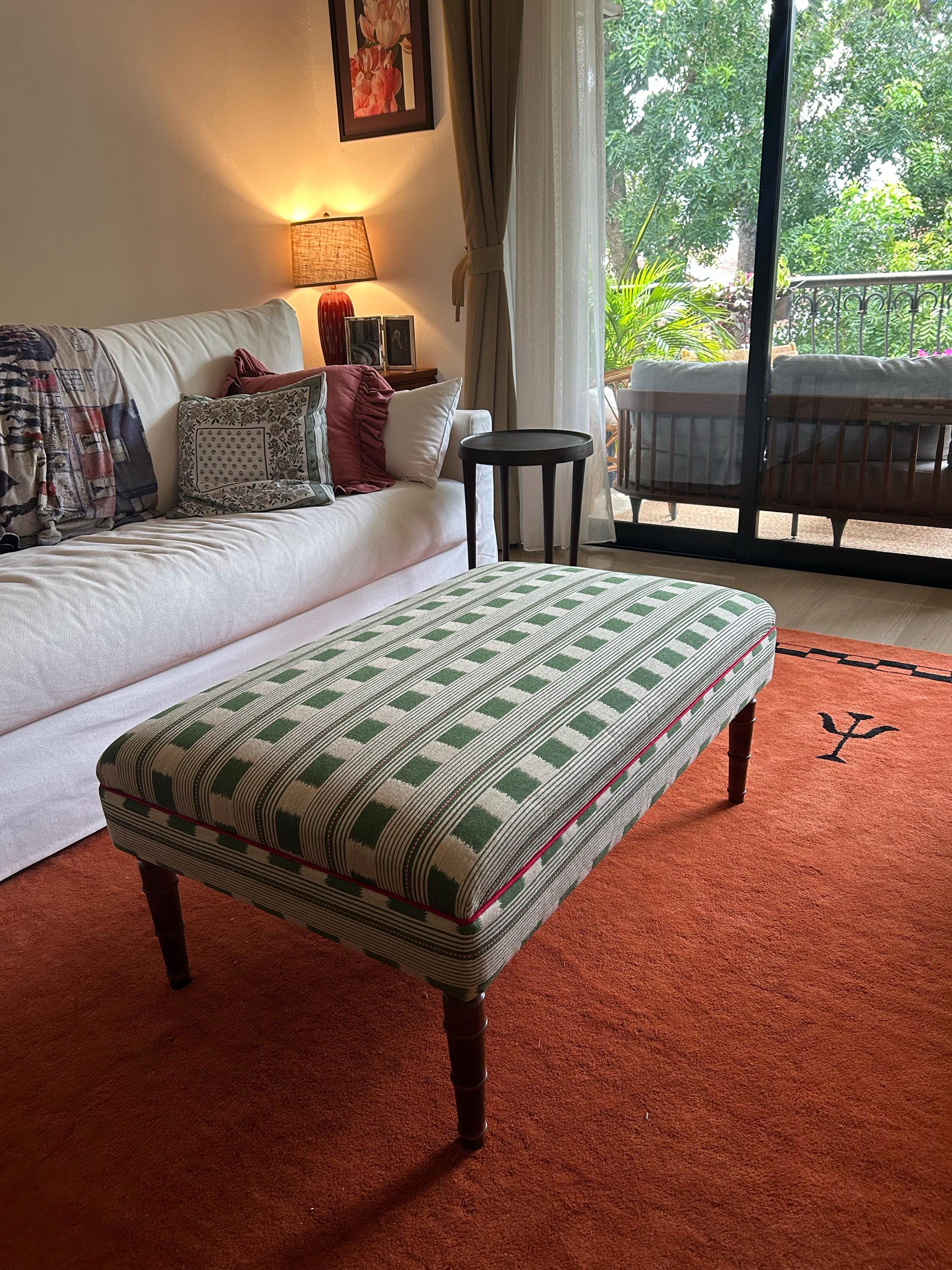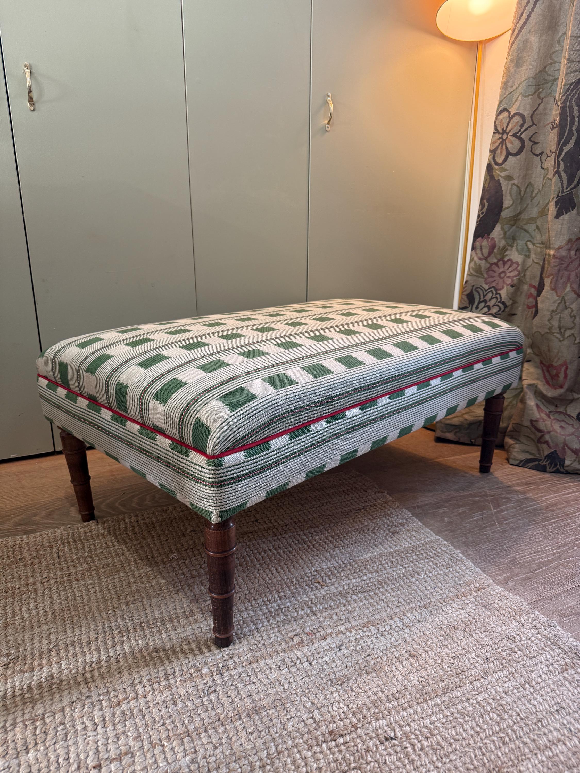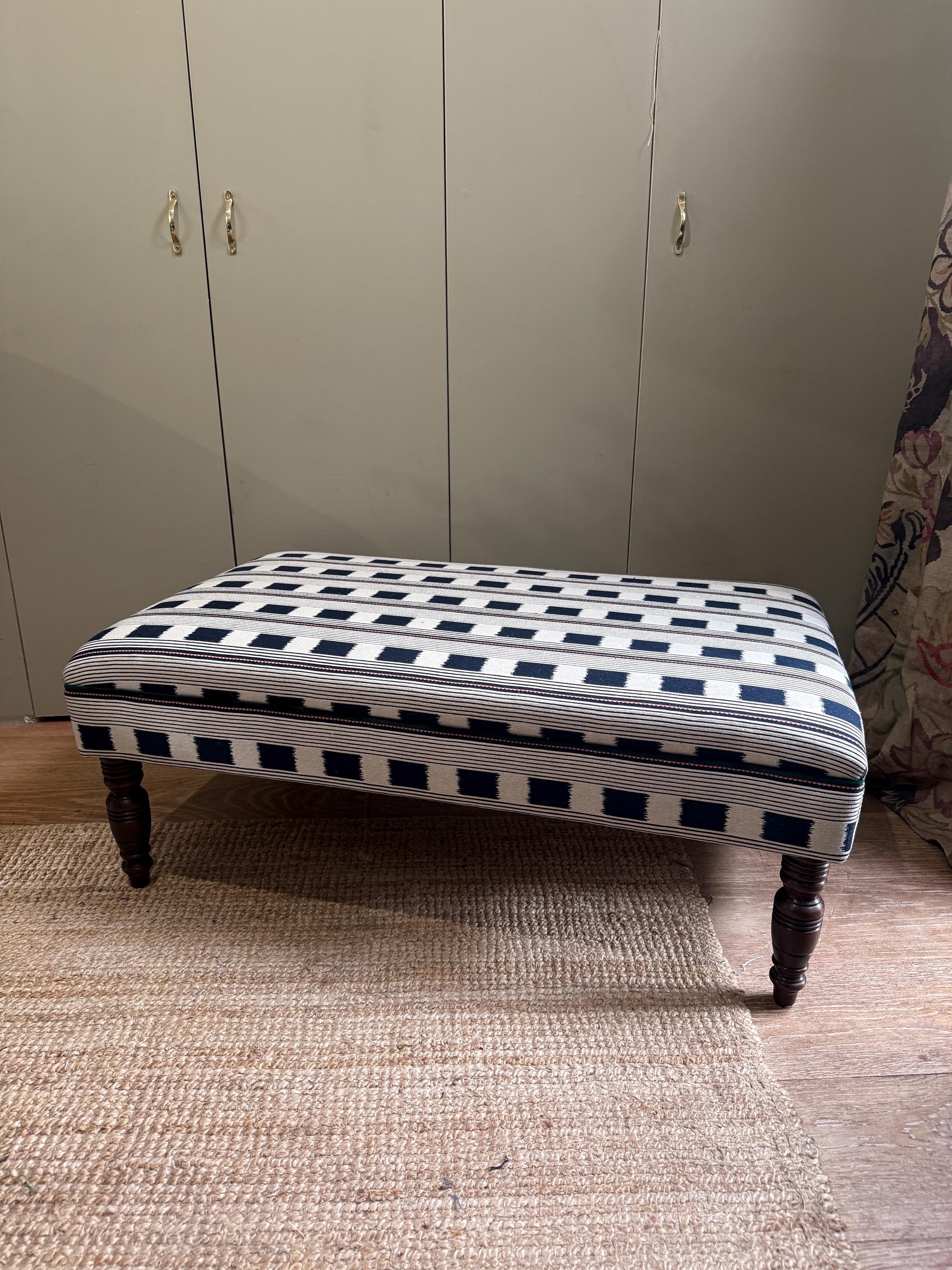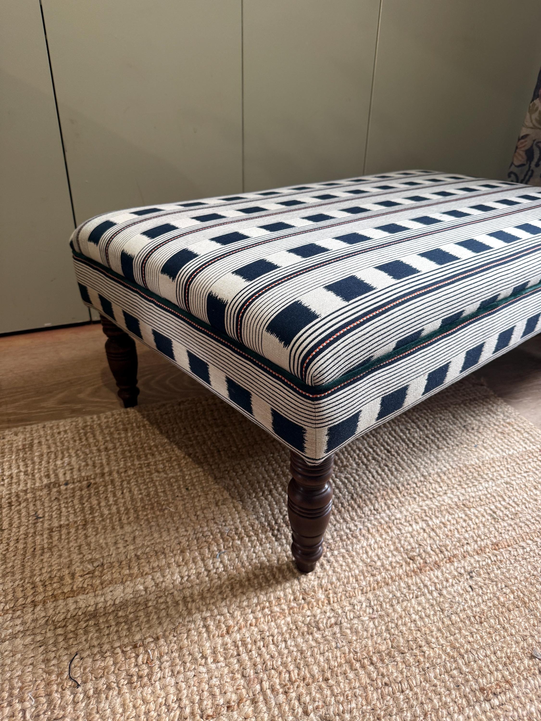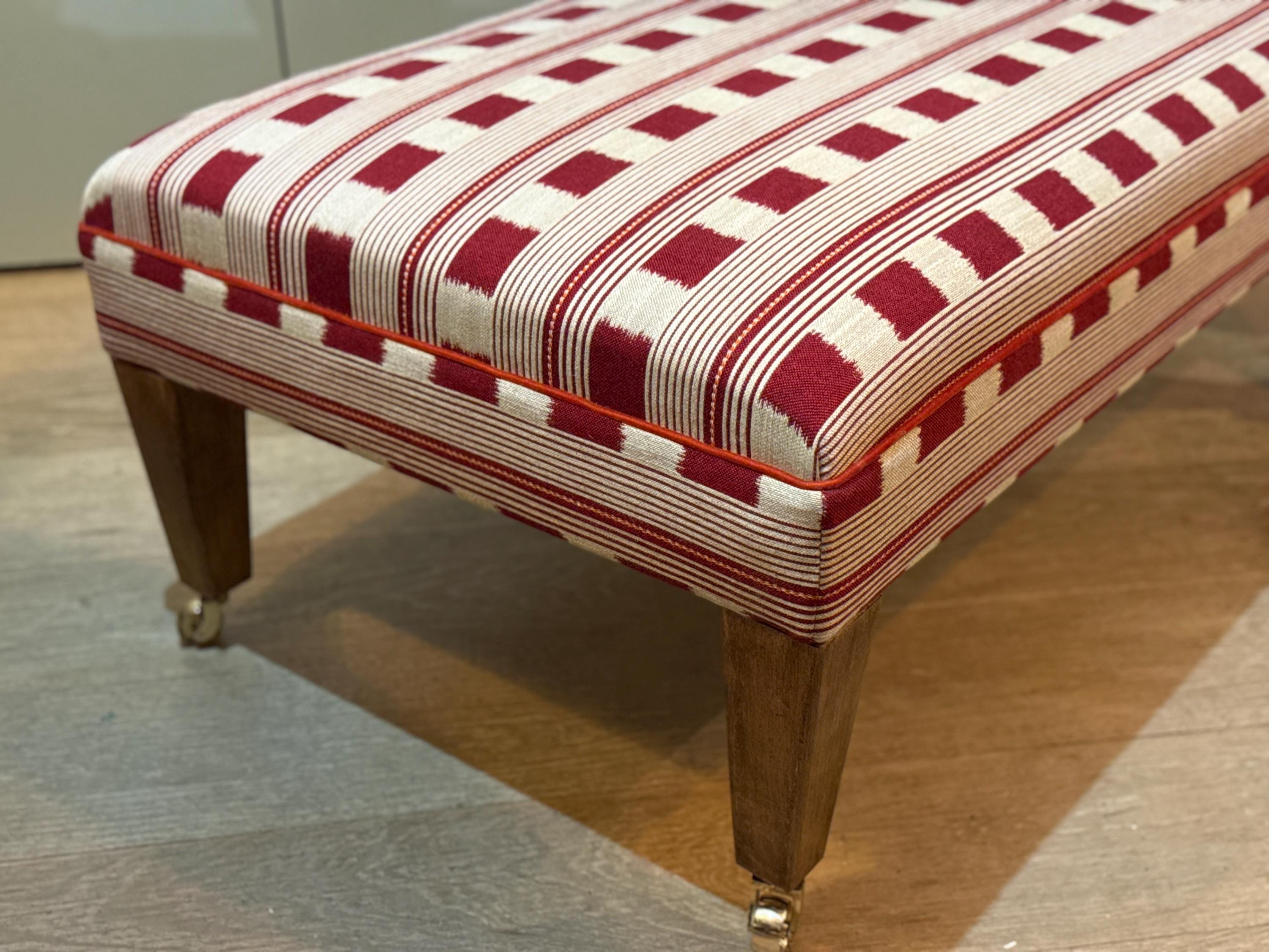 Pls see other listings for bespoke benches and foot stools in client’s own fabric or for our fabric consultation service and a choice of house fabrics. We hold accounts with a wide range of premium fabric houses such as Colefax and Fowler, Osborne and Little, Linwood, Romo, Rapture and Wright, Studio Ashby and more.