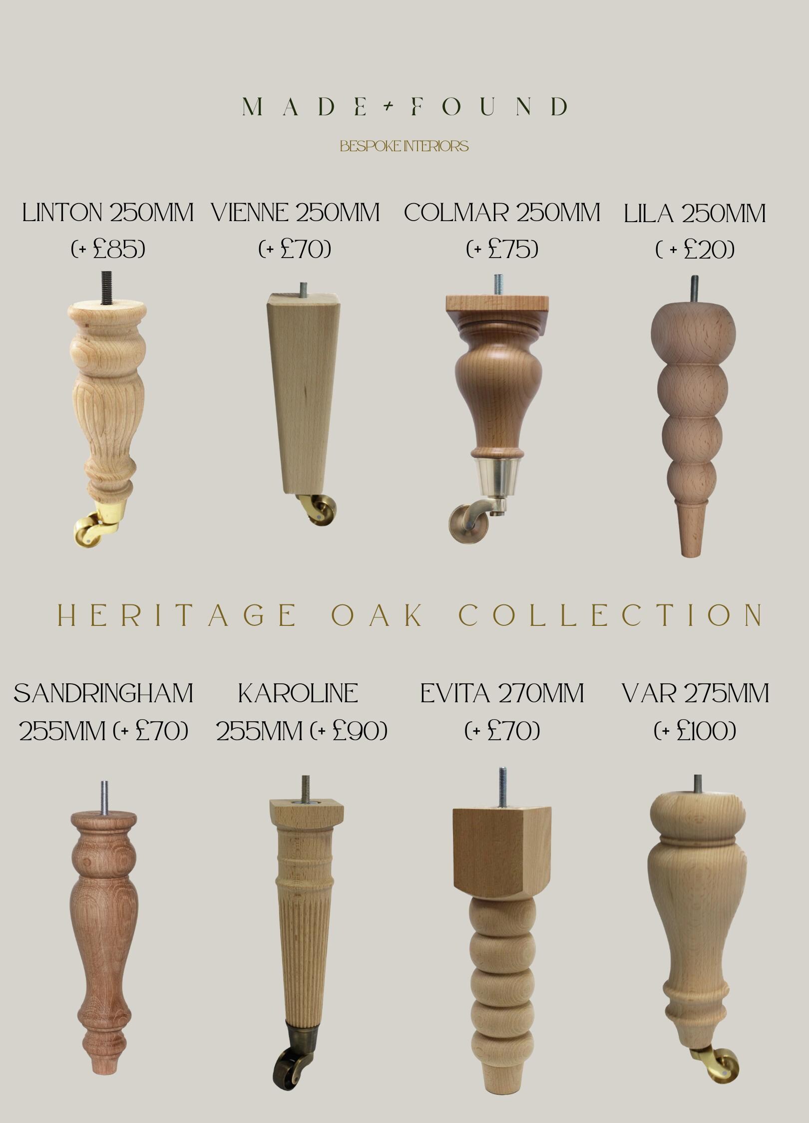 We offer any bespoke size if the standard measurements don’t work for your interior - please send us a direct message and will respond with a quote within 48h. Our turned legs which we treat with a naturally warm bees wax are handmade in Edinburgh by a traditional wood turner and we can have the legs painted in any colour for an additional charge.