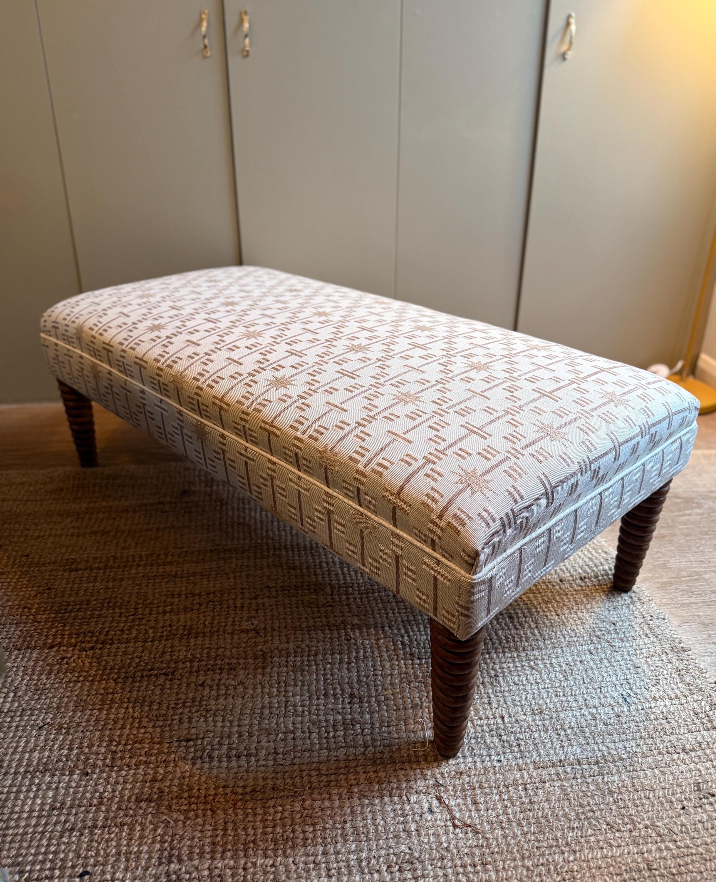 Pls see other listings for bespoke benches and foot stools in client’s own fabric or for our fabric consultation service and a choice of house fabrics. We hold accounts with a wide range of premium fabric houses such as Colefax and Fowler, Osborne and Little, Linwood, Romo, Rapture and Wright, Studio Ashby and more.