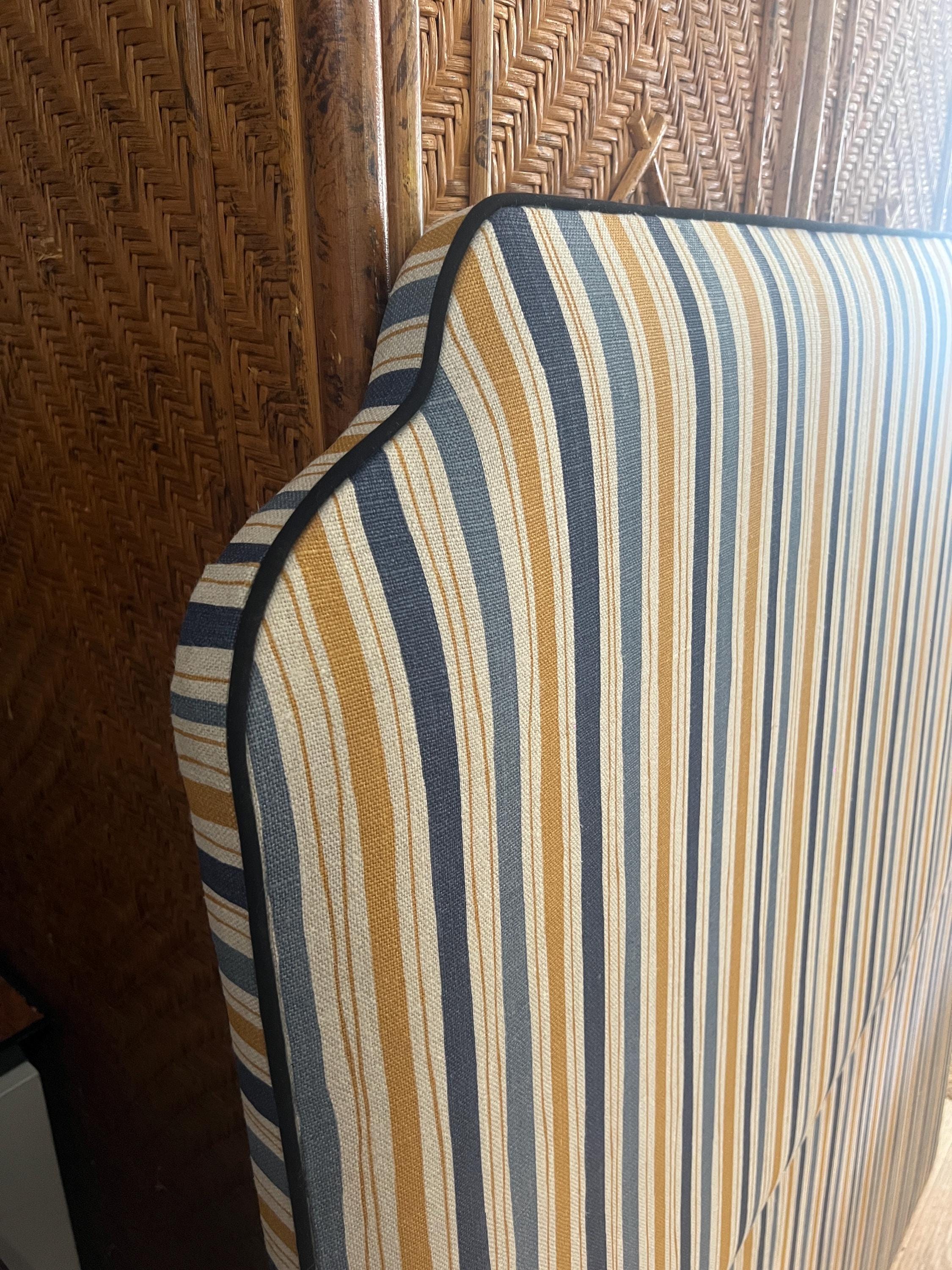 Our premium bespoke Christopher Farr Cloth Boundary Printed Fabric upholstered headboards are made to order. A choice shapes and various colours complimented by contrasting piping detail in a colour of your choice to make it pop. We offer wall-hung as standard, floor standing (additional charge) and strutted headboards.